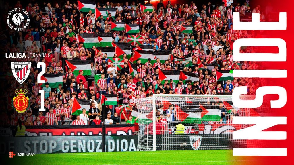 Eskerrik asko Athletic, herri palestinarrari laguntzeagatik eta genozidioa salatzeagatik. Babes eta bake keinua, Athleticzaleen zati handi bat hunkitu zuena. Nire gaitzespen osoa DAZNri eta Movistarri palestinarrari egindako omenaldiaren "gaitzespenak" egiteagatik eta Israelen genozidioa zuritzen laguntzeagatik. Abonatu bat galdu dute. Athletic Palestinaren alde. Stop genozidioa.